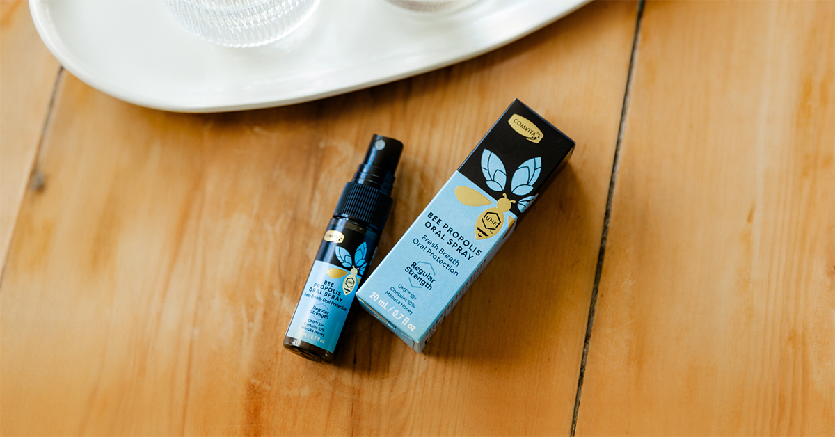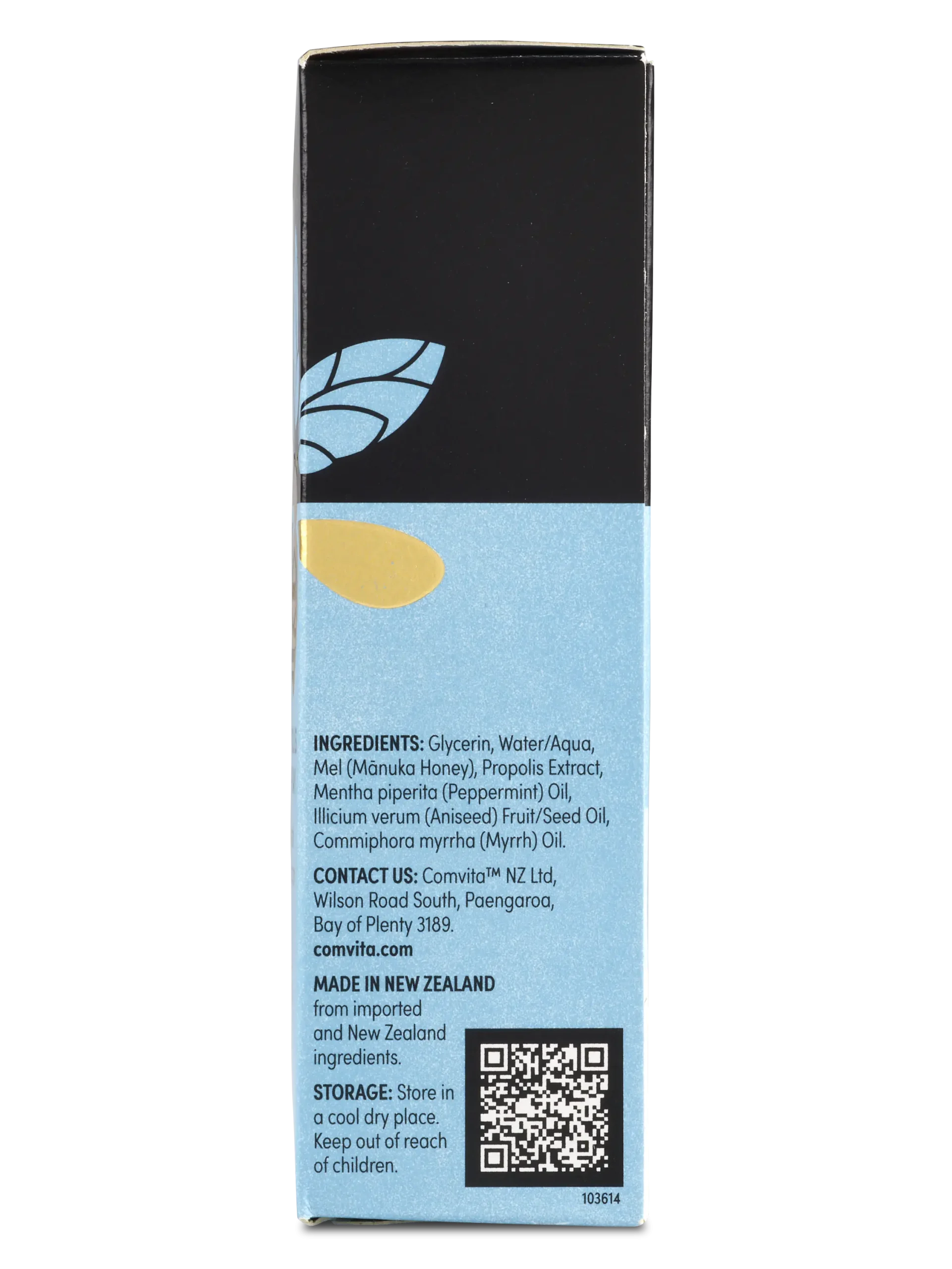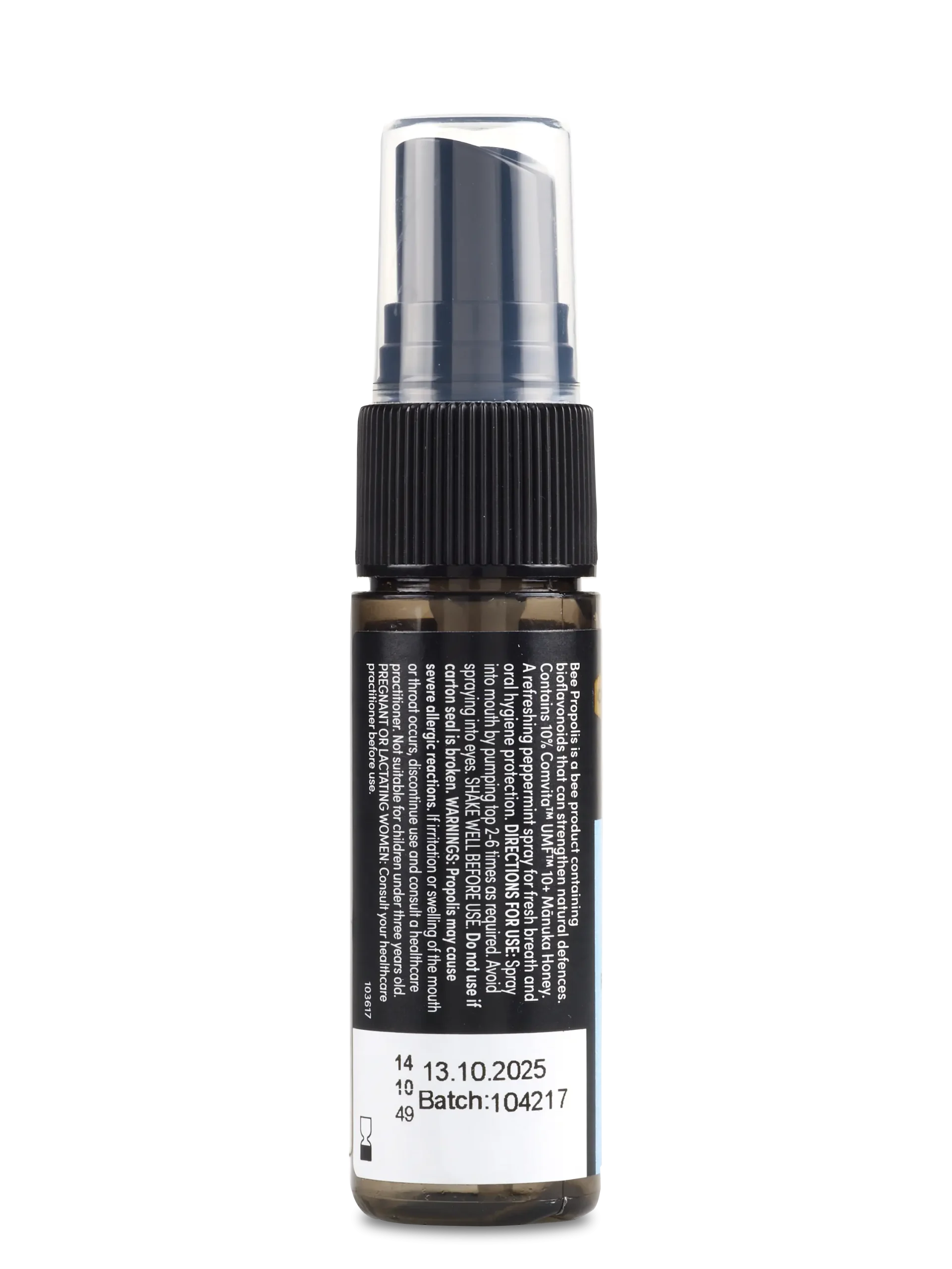 Support your Oral hygiene with Comvita Propolis Oral Spray Regular Strength. A natural, bee propolis Oral spray that helps fight odor causing bacteria, hydrates and freshens the mouth. Contains 10% Mānuka honey (UMF10+) for extra immune boosting antioxidants to strengthen your natural defenses.